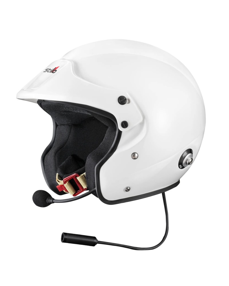 Ce casque offre un excellent rapport qualité/prix, avec une coque en fibres et kevlar multicouches et un intercom Stilo intégré compatible avec les amplis DG-30, DG-10 et WRC. Il propose un micro sur bras réglable, une casquette ajustable et une finition blanche avec intérieur noir. Livré avec les clips Hans déjà montés, il constitue une option fiable et performante pour la compétition.