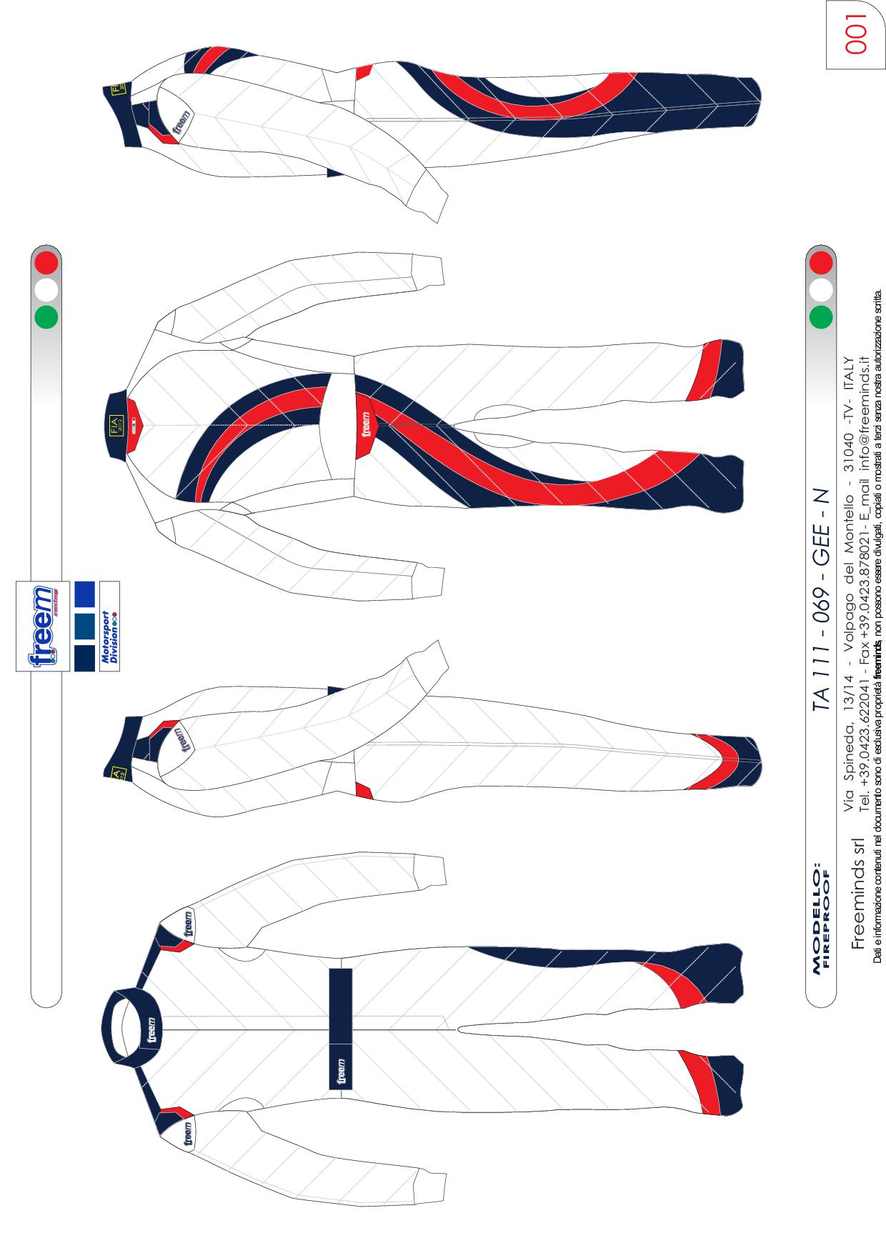 Freem s'efforce de produire des combinaisons de haute qualité approuvées FIA 8856-2000 et/ou SFI.