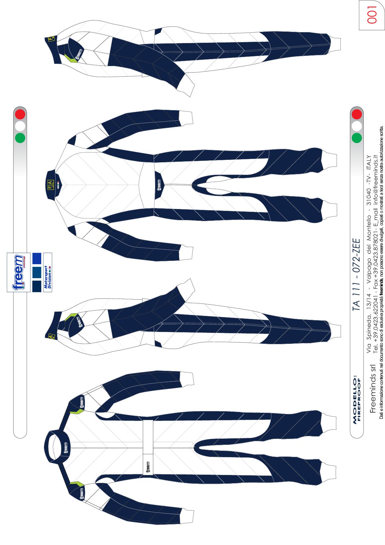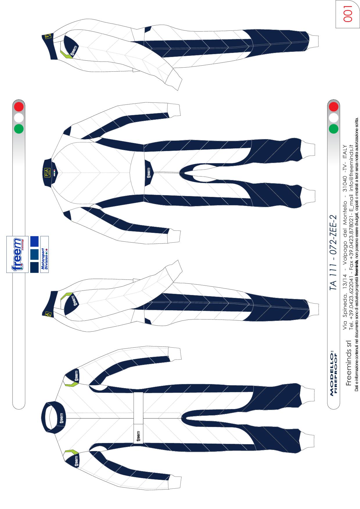 Freem s'efforce de produire des combinaisons de haute qualité approuvées FIA 8856-2000 et/ou SFI.